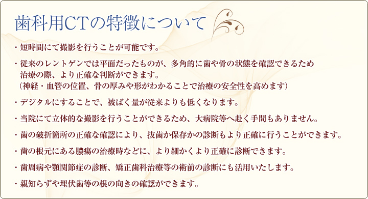歯科用CTの導入によって、これまで以上に「より安全でより正確な診断」が可能となりました。 |