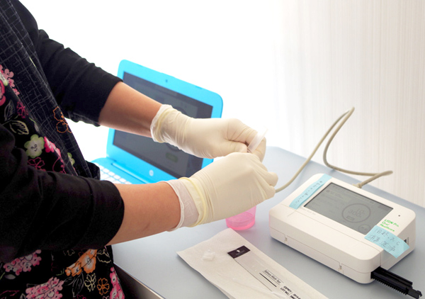 グルコセンサーGS−IIを使い、咀嚼能力を約6秒で数値化することができます。