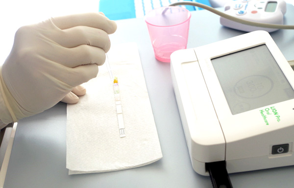 最初に唾液検査 ⇒ 通常の歯科治療 ⇒ 唾液検査結果に基づく指導 をいたします。