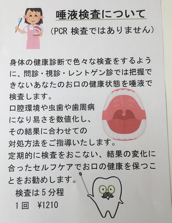唾液検査費用:1,210円/1回 (※PCR検査ではありません)